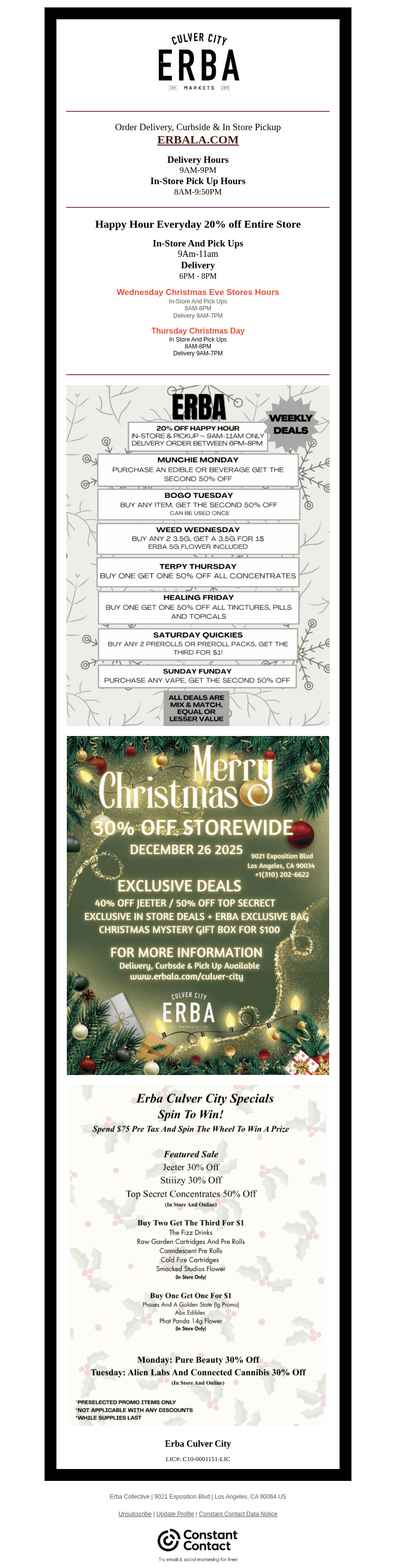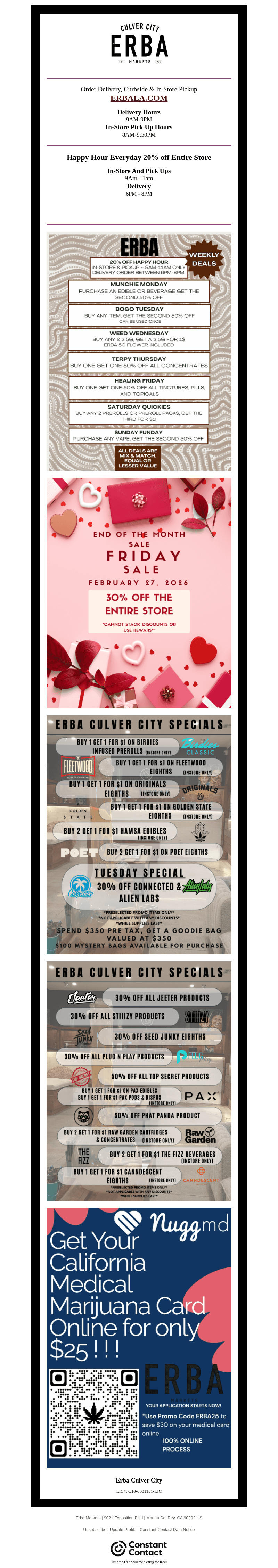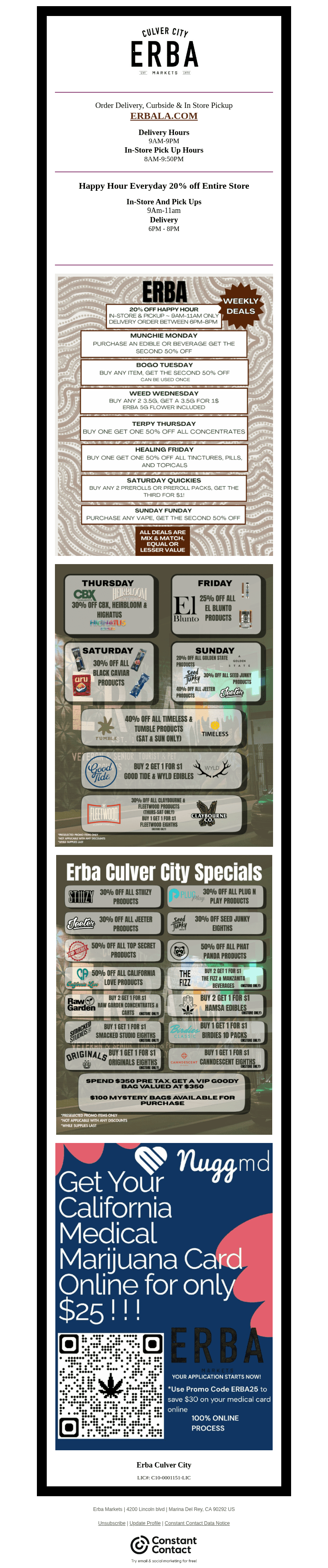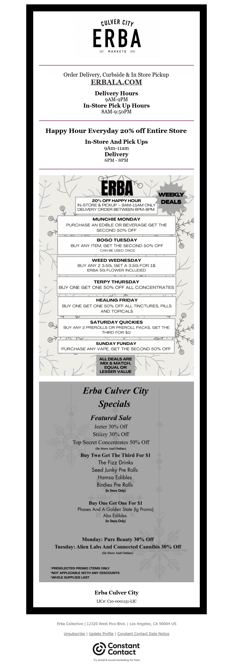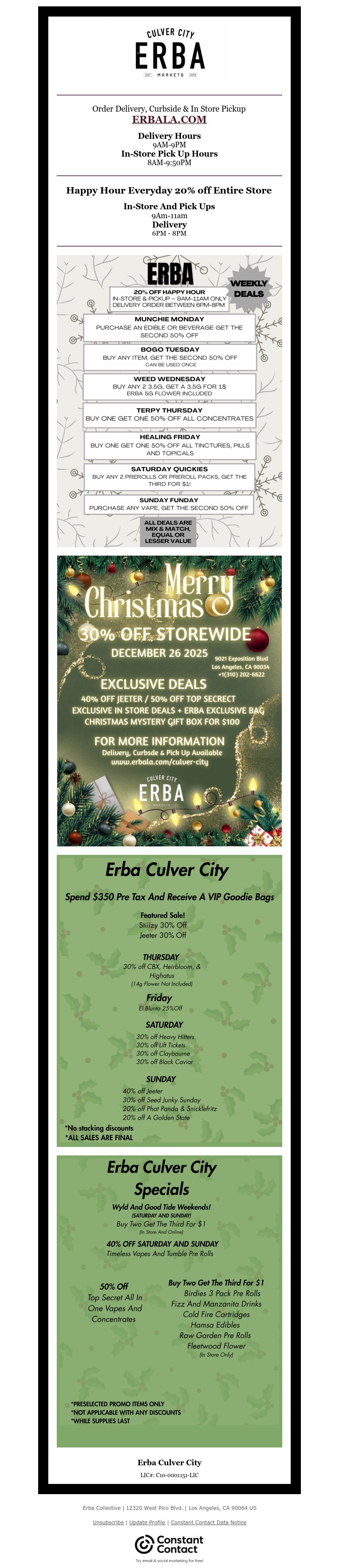 Welcome to ERBA Markets Culver City, the premier destination for both recreational and medical marijuana in Culver City, Los Angeles. We're committed to providing a superior customer experience, with a wide selection of high-quality cannabis products, including flower, tinctures, and more.