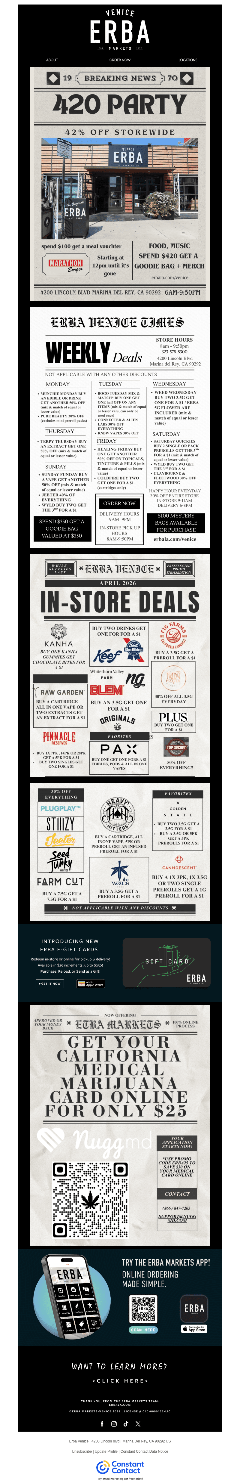 Welcome to ERBA Markets Venice, the premier destination for both recreational and medical marijuana in Venice, Los Angeles. Our dispensary is committed to providing a superior customer experience, with a wide selection of high-quality cannabis products, including flower, tinctures, and more.