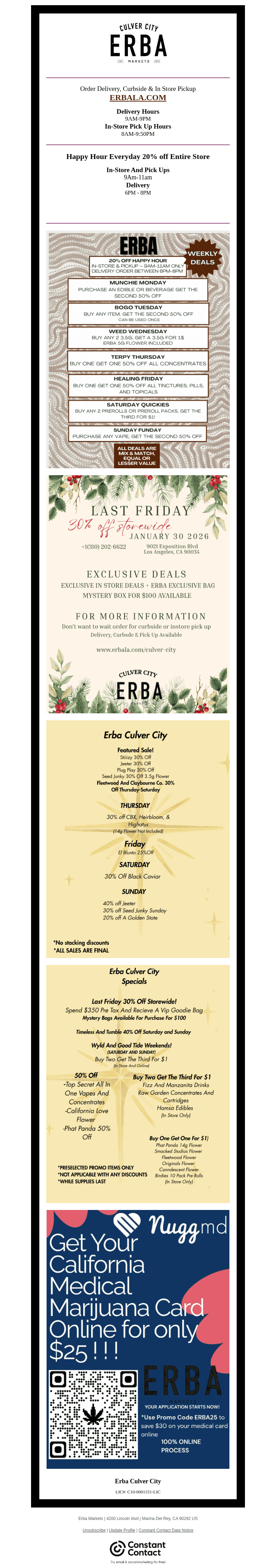 Welcome to ERBA Markets Culver City, the premier destination for both recreational and medical marijuana in Culver City, Los Angeles. We're committed to providing a superior customer experience, with a wide selection of high-quality cannabis products, including flower, tinctures, and more.